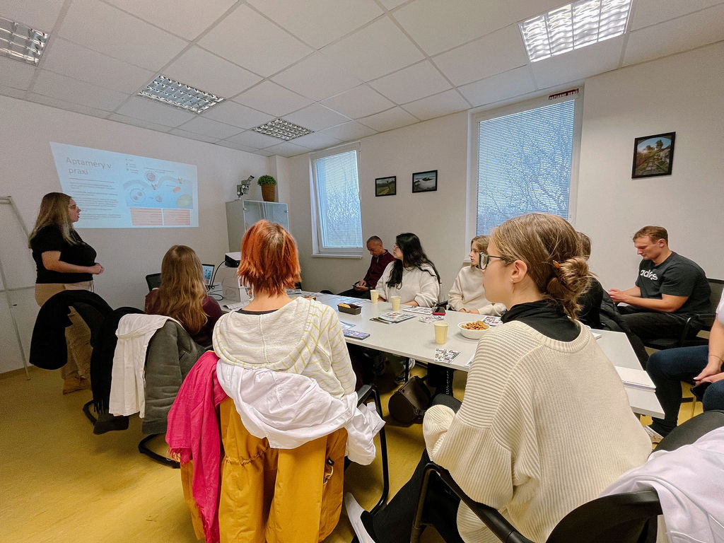 14.11.2025 sme v Centre biovied SAV privítali stredoškolákov z rôznych kútov Slovenska na popularizačnom podujatí venovanom moderným prístupom v diagnostike rakoviny. Workshop sa konal v rámci projektu APTAmiR „Revolučná diagnostika rakoviny: Využitie miRNA senzorov na báze aptamérov na rýchlu a priamu detekciu“ (APVV-24-0491) a viedla ho Ing. Alexandra Poturnayová, PhD. z Oddelenia biofyziky a elektrofyziológie, ÚMFG.