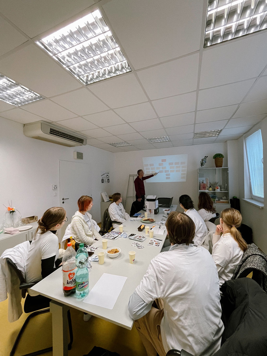 Najväčším lákadlom workshopu bola, okrem občerstvenia, praktická laboratórna časť. Študenti si po úvodnom teoretickom výklade obliekli do bielych plášťov a prešli si v skrátenej forme takmer celou cestou vzniku biosenzora – od prípravy meracích platforiem až po experimenty s reálnymi bunkami.