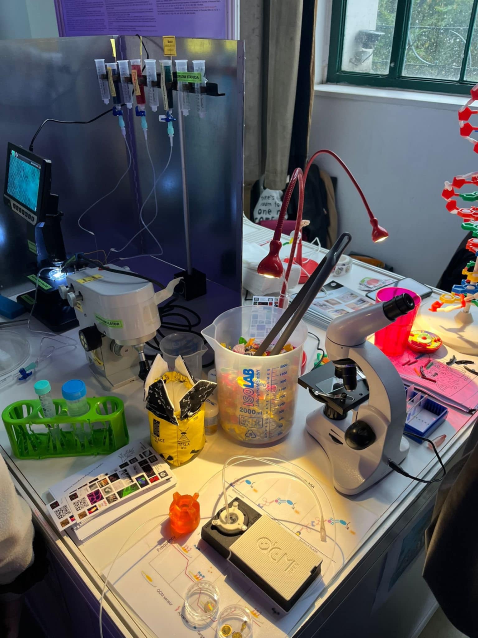 Visitors explored how cells generate and transmit electrical signals in neurons and heart cells (cardiomyocytes). Even though the inside of a cell might seem like a chaotic ion–molecule “soup,” ion channel proteins carefully guide the flow of ions, enabling the generation of action potentials – the key communication signals in nerve and muscle cells. They also learned how the brain transforms chaos into order, giving rise to thoughts and memories.