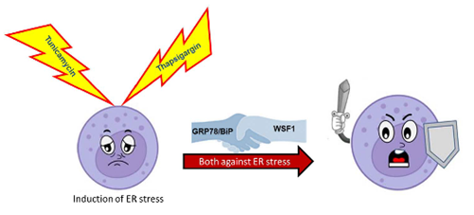 Výskum ukázal, že proteíny wolframin, P-glykoproteín (P-gp) a chaperón GRP78/BiP môžu spoločne ovplyvňovať odpoveď leukemických buniek na chemoterapiu prostredníctvom regulácie stresu endoplazmatického retikula (ER). ER zabezpečuje správne skladanie a úpravu bielkovín; jeho stres môže viesť buď k aktivácii mechanizmov prežitia buniek a vzniku liekovej rezistencie, alebo pri dlhodobom pôsobení k apoptóze a zvýšenej citlivosti na liečbu. Štúdia využila bunky myšej leukémie L1210, liekovo senzitívne a rezistentné s vysokou expresiou P-gp. Rezistentné bunky vykazovali zvýšené hladiny GRP78/BiP aj wolframínu. Imunoprecipitačné analýzy potvrdili interakciu wolframínu s GRP78/BiP, zosilnenú v podmienkach ER stresu, ako aj jeho väzbu na receptory PERK a ATF6. Výsledky naznačujú, že regulácia ER stresu je úzko prepojená s mechanizmami liekovej rezistencie a môže predstavovať potenciálny terapeutický cieľ.